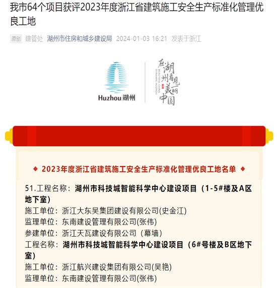 1ÔÂ3ÈÕ£¬£¬£¬£¬£¬£¬£¬Õã½Ê¡½¨ÉèÌüÐû²¼¡¶¹ØÓÚÐû²¼2023Äê¶ÈÕã½Ê¡ÐÞ½¨Ê©¹¤Çå¾²Éú²ú±ê×¼»¯ÖÎÀíÓÅÁ¼¹¤µØ¿¼ÆÀЧ¹ûµÄ֪ͨ¡·£¬£¬£¬£¬£¬£¬£¬Î»ÓÚºþÖÝÄÏÌ«ºþÐÂÇøÎ÷·ïÑúµ¥Î»XSS-03-02-04CºÅµØ¿é¡¢Î÷·ïÑúµ¥Î»XSS-03-02-04C-1ºÅµØ¿éµÄºþÖÝÊпƼ¼³ÇÖÇÄÜ¿ÆÑ§ÖÐÐĽ¨ÉèÏîÄ¿£¨abpay°®²©Ç®°ü¹ÙÍø¡¤Ì«ºþÊ××ù£©ÈÙ»ñ¡°2023Äê¶ÈÕã½Ê¡ÐÞ½¨Ê©¹¤Çå¾²Éú²ú±ê×¼»¯ÖÎÀíÓÅÁ¼¹¤µØ¡±³Æºô£¬£¬£¬£¬£¬£¬£¬ÕâÒ»ÉùÓþÊǶÔÏîÄ¿ÔÚÇå¾²Éú²ú±ê×¼ÖÎÀí·½ÃæµÄ¿Ï¶¨ºÍÈϿɡ£¡£¡£¡£¡£¡£¡£
