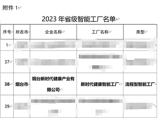 新时代集团下属烟台康健公司获评“2023年山东省级智能工厂”声誉称呼 |