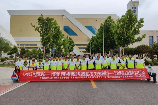 6月2号上午,,,,,中国环保衡水公司联合共青团衡水市委、衡水市生态情形局、衡水市生态情形局高新手艺工业开发区分局、衡水市先锋青少年自愿效劳中心配合开展“垃圾变废为宝,,,,,文明你我偕行”节能环保主题教育活动。。。。。。。