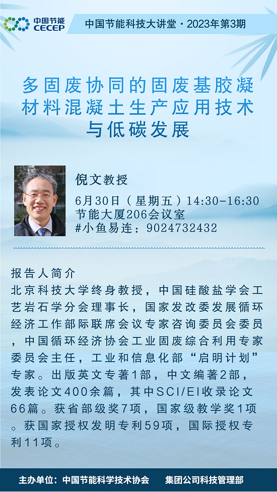 讲座主题:多固废协同的固废基胶凝质料混凝土生产应用手艺与低碳生长